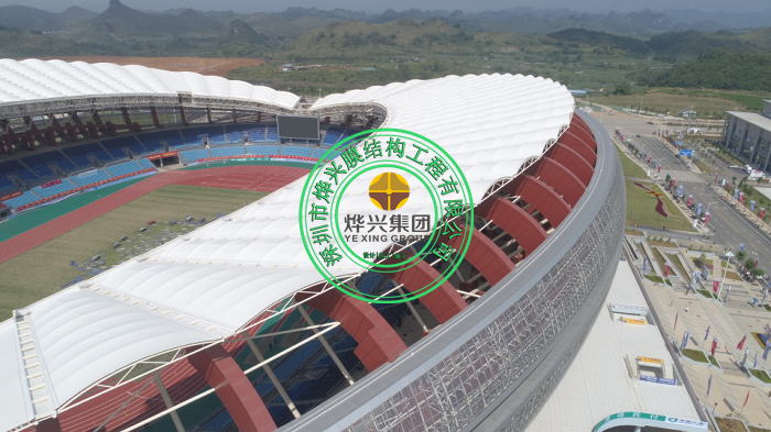 崇左市體育中心項目是廣西壯族自治區(qū)統(tǒng)籌推進的重大項目,是為迎接2018年廣西第十四屆少數(shù)民族傳統(tǒng)體育運動會而建設(shè)其中膜結(jié)構(gòu)部分全部由我們燁興膜結(jié)構(gòu)設(shè)計施工安裝。