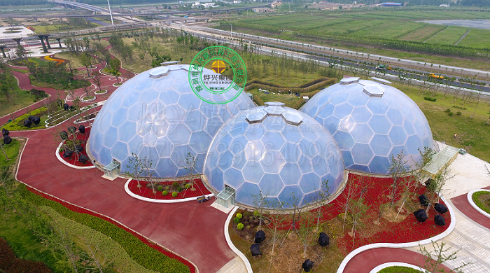 案例詳情: 連云港ETFE球形溫室是以“人與植物共生共融”為主題,融合高科技手段建設(shè)而成的一個(gè)集科研教育、科普展示及商業(yè)餐飲為一體的綠色溫室展館。