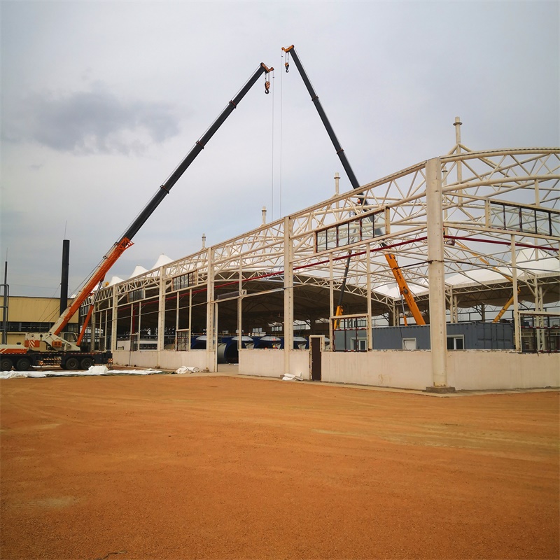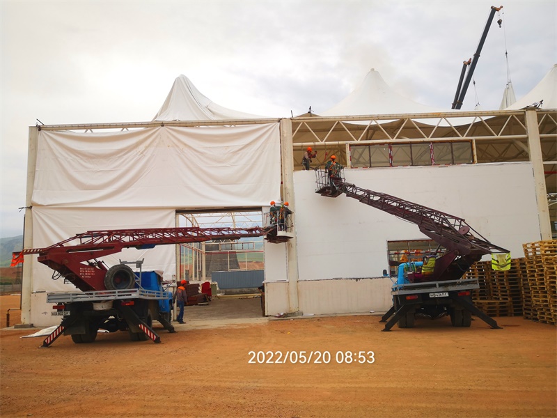 外貿(mào)合作形式:本項目在烏茲別克斯坦·塔什干州·阿漢加蘭落地,在全球疫情影響下,采用了以下合作形式:我們采購鋼材、膜材及配套的相關(guān)材料,在國內(nèi)工廠加工為成品部件后打包運輸?shù)絿鈭龅兀粯I(yè)主在當?shù)卣夜と藞F隊,我們派遣資深的鋼結(jié)構(gòu)和膜結(jié)構(gòu)技術(shù)人員到現(xiàn)場培訓并指導工人施工安裝,直至項目順利完工。