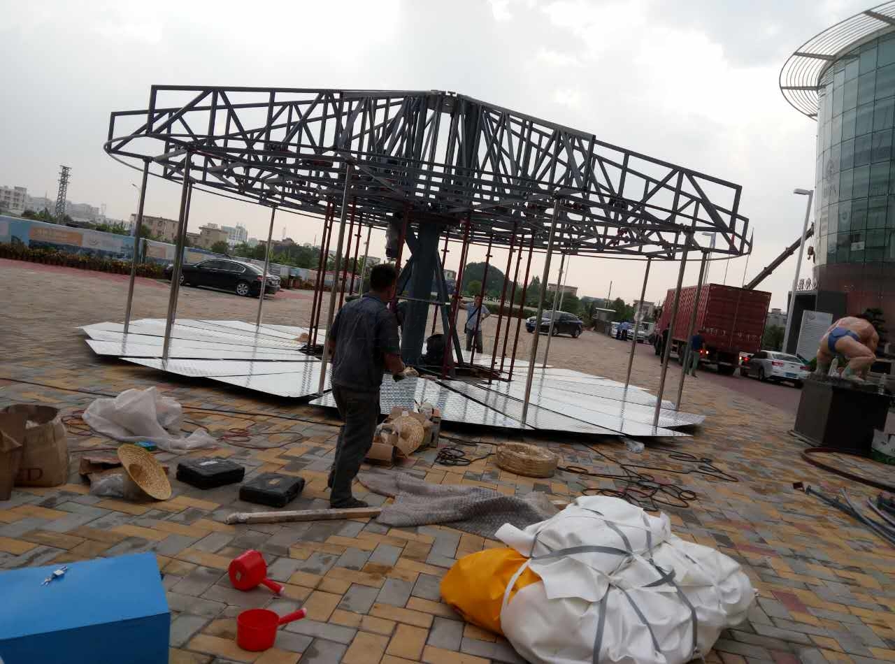 9月末,中山游樂場的相關(guān)人員找到我們公司,希望做一個膜結(jié)構(gòu)棚頂?shù)男D(zhuǎn)木馬。每一個旋轉(zhuǎn)木馬,都是游樂場最漂亮最耀眼的存在,但傳統(tǒng)的木馬設(shè)施,棚頂都是用普通彩色帆布來做,用一兩年就會褪色腐爛,這次中山游樂場采用我們的膜結(jié)構(gòu)進行制作,看中的是膜材那長達15年以上的使用壽命和科學(xué)設(shè)計的鋼結(jié)構(gòu)帶來的安全保障。