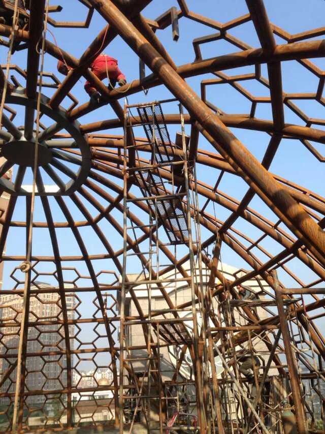 專業(yè)防銹加工處理:深圳燁興的每一個(gè)工作,其鋼結(jié)構(gòu)部件都要在我們指定的資質(zhì)合格的加工廠進(jìn)行加工成型,然后景觀噴砂打磨以后才按順序上漆防銹。這個(gè)過(guò)程比直接在現(xiàn)場(chǎng)加工成型的的鋼結(jié)構(gòu)更加優(yōu)美耐用,防銹效果能達(dá)到5年以上。這個(gè)過(guò)程,最是考驗(yàn)企業(yè)良心的時(shí)候,省步驟只做表面工程會(huì)省很多錢,是差價(jià)產(chǎn)生的主要原因。