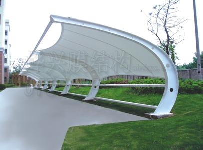 1、耐用:由于高強(qiáng)度的膜材出現(xiàn),再加上張拉技術(shù)的應(yīng)用,使膜結(jié)構(gòu)車棚抵御風(fēng)雨的能力是一般雨蓬之類不可比擬的。有的車棚采用永久性膜材,可使用三、四十年。特別是遇到劇烈的暴風(fēng)雨天氣,膜結(jié)構(gòu)建筑巍然不動,毫發(fā)不損。