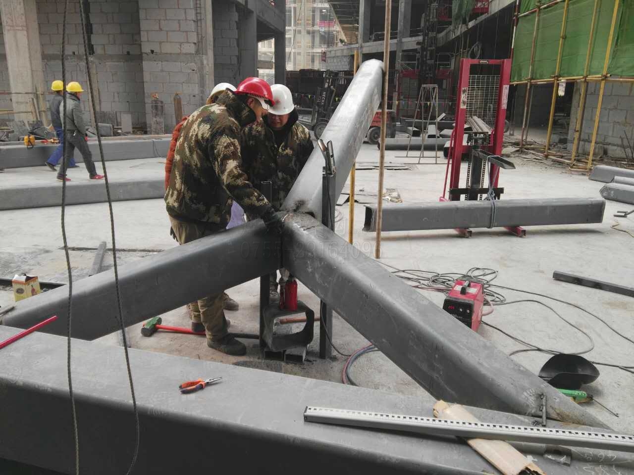 鋼結(jié)構(gòu)部分是西寧項目工程量最大的工作。這個項目中,為了有效保證抗雪壓能力,主體鋼結(jié)構(gòu)采用的是四方厚管鋼架,加上是不規(guī)則拼裝方式,所以不能在工廠預(yù)加工,都是把鋼材運(yùn)到現(xiàn)場進(jìn)行直接處理。經(jīng)過連續(xù)奮戰(zhàn),目前主體框架已經(jīng)搭建完成,現(xiàn)在正在對網(wǎng)架連接處進(jìn)行補(bǔ)焊加固??傮w而言,西寧ETFE膜結(jié)構(gòu)項目最難啃的那塊骨頭目前已經(jīng)啃完,后期的工作進(jìn)度將會比前期快,小編將會繼續(xù)給大家?guī)碓擁椖康淖钚逻M(jìn)展。