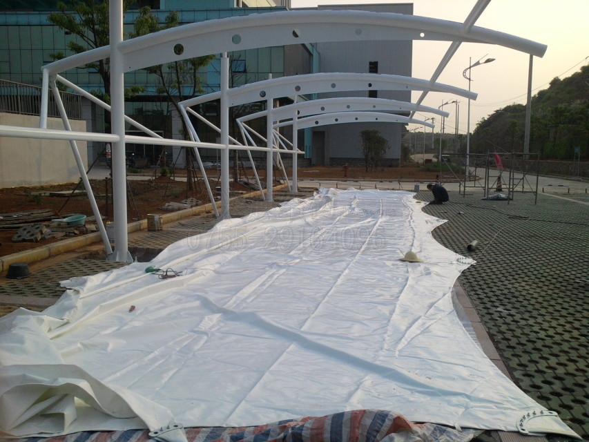 總之,下雨天不建議膜結(jié)構(gòu)工程正常施工,為了不耽誤工期,雨天可以在室內(nèi)對鋼結(jié)構(gòu)部分進行預(yù)加工(最好是放在專業(yè)的鋼結(jié)構(gòu)加工廠進行),等天氣晴朗時再拼接安裝。
