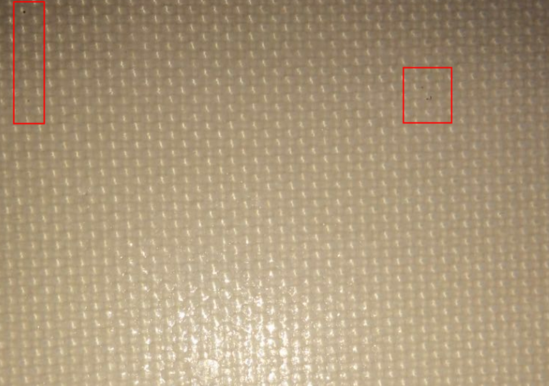 上圖中,膜材表面存在不少黑色斑點(diǎn),需要考證其出現(xiàn)原因
