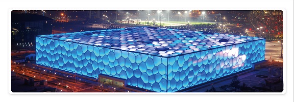 ETFE 化學名稱乙烯-四氟乙烯共聚物,是一種含氟高分子熱塑型材料,是人工高強度氟聚合物,ETFE膜材直接由材料成膜。ETFE膜材具有良好的耐久性、易潔性和穩(wěn)定性,是一種典型的非織物類膜材,為目前國際上最先進的薄膜材料。國家體育場選用的是0.25毫米厚、無色透明帶印刷點的ETFE 膜材。