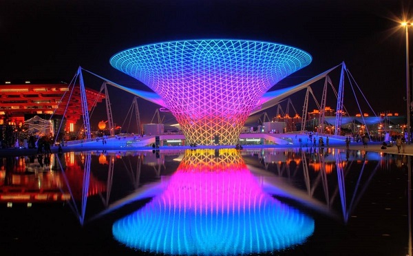世博軸這個項目是膜結(jié)構(gòu)與玻璃幕墻完美結(jié)合的典型,膜結(jié)構(gòu)讓設(shè)計師能輕松實現(xiàn)97米的空間跨度展現(xiàn),玻璃幕墻做的陽光谷,則能完美展現(xiàn)燈光效果,使整個項目無論白天或者夜晚都有了生氣,成為地標(biāo)性的風(fēng)景建筑。