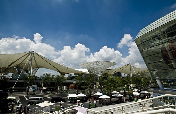 “世博軸索膜結(jié)構(gòu)是迄今為止世界規(guī)模最大的連續(xù)張拉索膜結(jié)構(gòu)。”上海世博會工程建設(shè)指揮部辦公室的市政項目部總經(jīng)理趙克平介紹說。“膜材選用了一種名為PTFE(聚四氟乙烯)的圖層玻璃纖維,具有不易燃性、防紫外線、抗風(fēng)化、自潔性、高反射性等特點。”世博軸總面積約77224平方米的PTFE膜結(jié)構(gòu),既是一道與眾不同的風(fēng)景線,也發(fā)揮了巨大的實用價值,為7000多萬參觀世博園的游客遮陽擋雨、駐足納涼。