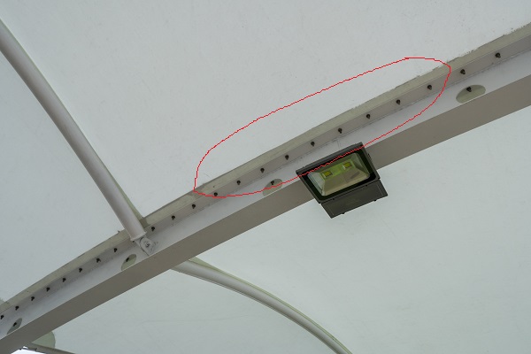 一般如果膜材抗疲勞能力弱,膜布會(huì)從圖中紅圈部分開始開裂