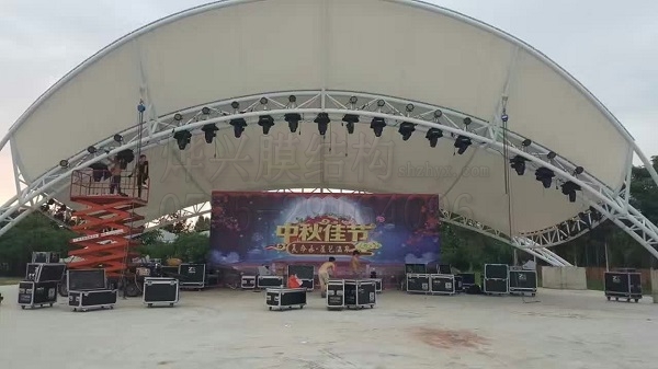 2、極具表現(xiàn)力的建筑形態(tài):具有特定功能的建筑都可通過(guò)立意得以表達(dá),舞臺(tái)膜結(jié)構(gòu)的獨(dú)特外形體現(xiàn)了建筑自身的自然美感。這些建筑形態(tài)本身和與其相協(xié)調(diào)的傳統(tǒng)建筑一起構(gòu)成了令人興致盎然的地面標(biāo)志性建筑。優(yōu)秀的膜結(jié)構(gòu)設(shè)計(jì)是結(jié)構(gòu)與外形的有機(jī)融合,使其顯得了類拔萃,同時(shí)與自然環(huán)境、歷史及現(xiàn)代的城市景觀有機(jī)結(jié)合。