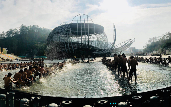 現(xiàn)場已經(jīng)安排表演人員進行緊張排練,很佩服小伙子們大冬天赤著膀子在水里排練的敬業(yè)精神