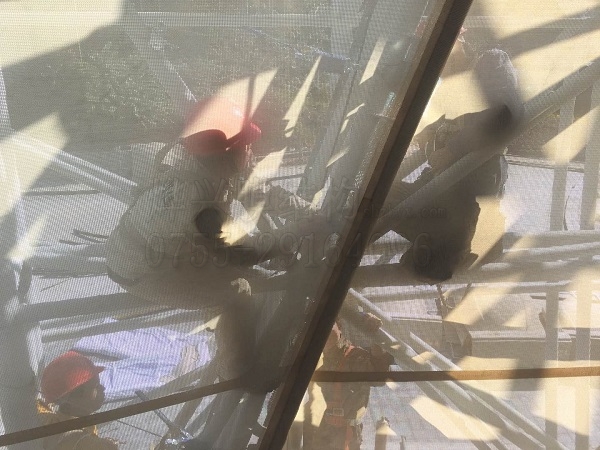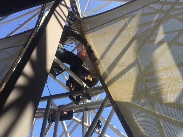 現(xiàn)場工人正在對安裝的膜材進行細節(jié)處理