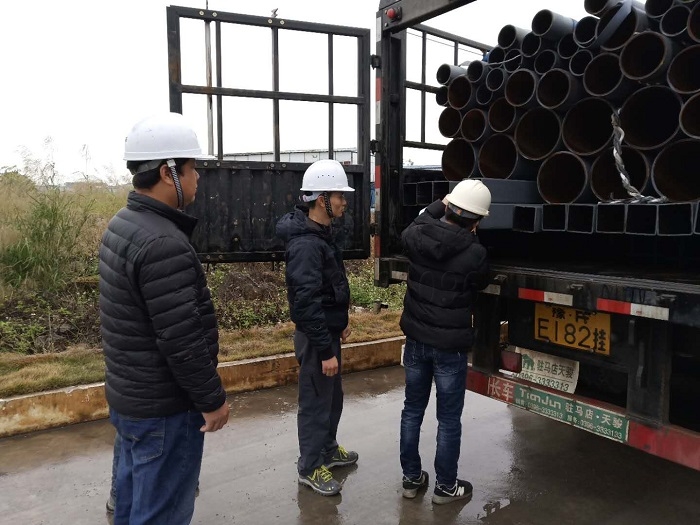 上圖為第三方人員對進(jìn)場鋼結(jié)材料厚度檢測