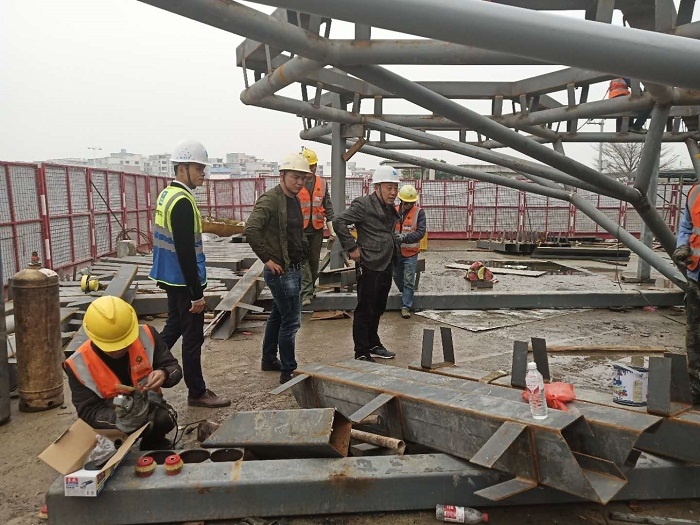 3月21日中建三局領(lǐng)導(dǎo)鄧總親臨現(xiàn)場指導(dǎo)吊裝工作。