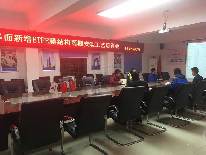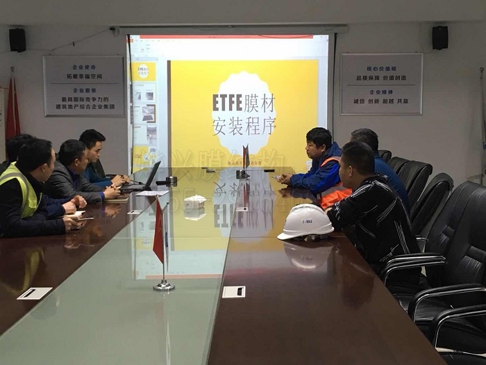3月6日,中建三局舉辦ETFE膜結(jié)構(gòu)雨棚安裝專項會議,再次對吊裝方案進(jìn)行討論補充,并最終通過方案。