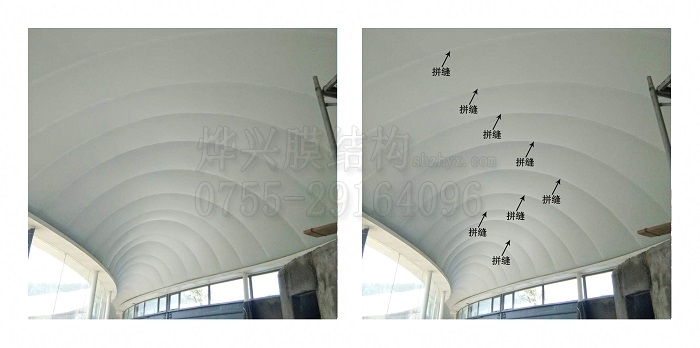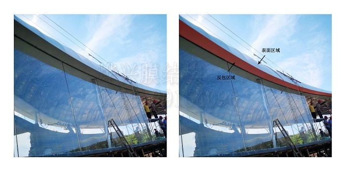 難點(diǎn)二:整體膜表面需無褶皺及膜單元連接處不漏任何金屬連接件,且過度平整。(如下圖)