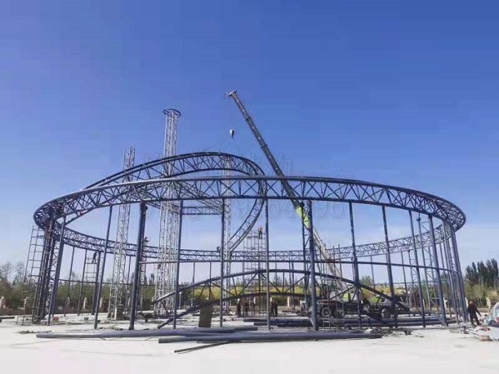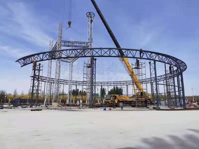 燁興-新疆喀什馬戲團(tuán)膜結(jié)構(gòu)表演館動(dòng)工多天,現(xiàn)場(chǎng)已經(jīng)拼裝制作出鋼結(jié)構(gòu)骨架的雛形,一起來(lái)了解一下吧。