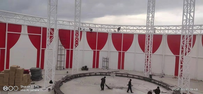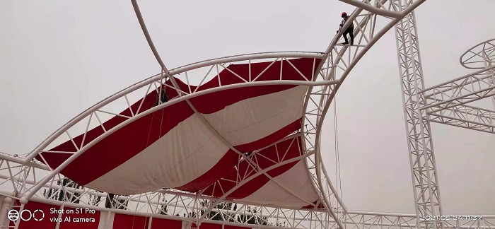 燁興-新疆喀什馬戲團(tuán)膜結(jié)構(gòu)表演館近期已進(jìn)入全面裝膜階段。今天小編將帶來現(xiàn)場的最新情況。