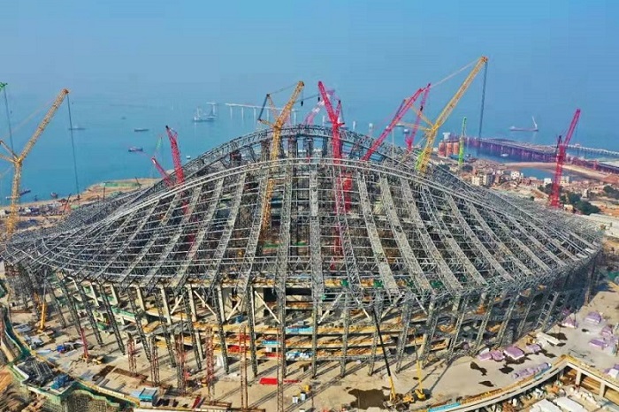 近日,備受社會各界關注的2023年亞洲杯場館--廈門新體育中心項目白鷺體育場屋蓋鋼結構全部吊裝完成,實現(xiàn)了總重約3萬噸的屋蓋鋼結構合龍,這標志著項目建設進入膜結構屋面安裝的全新沖刺階段。
