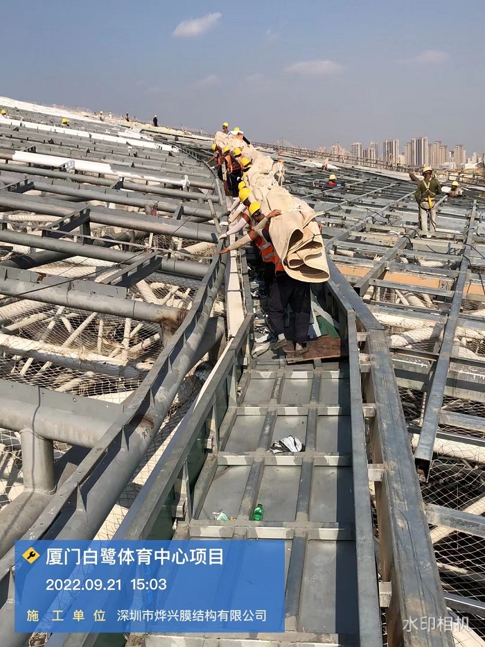以上就是燁興—廈門白鷺體育中心場(chǎng)館項(xiàng)目施工近況介紹。我們燁興專注做膜結(jié)構(gòu)已經(jīng)18年歷史,在這里小編想提醒各位:做大型膜結(jié)構(gòu)選擇燁興,工程質(zhì)量可靠,安全省心。歡迎添加燁興官方微信【13923448766,24小時(shí)為您提供咨詢報(bào)價(jià)服務(wù)。