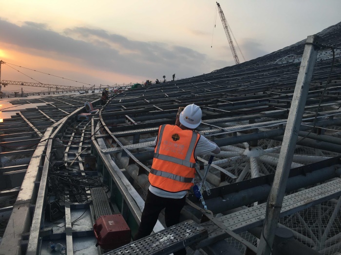 白鷺體育中心場(chǎng)館屋面總用膜量近六萬平米米,全部采用德國進(jìn)口的PTFE高強(qiáng)度環(huán)保膜材。經(jīng)過我們的設(shè)計(jì)深化后,這六萬多平膜材將被裁剪加工成大小不一的238個(gè)膜單元,截止今天,我們的膜結(jié)構(gòu)工廠已經(jīng)完成其中109個(gè)膜單元的裁剪,有72個(gè)單元的膜材已經(jīng)加工完成,現(xiàn)場(chǎng)完成施工安裝的膜單元有53個(gè)。根據(jù)現(xiàn)場(chǎng)項(xiàng)目負(fù)責(zé)人的反饋,目前膜結(jié)構(gòu)設(shè)計(jì)施工各項(xiàng)工作都在按計(jì)劃穩(wěn)步推進(jìn)中,待其它專業(yè)將現(xiàn)場(chǎng)施工場(chǎng)地騰開,后期會(huì)投入更多施工資源,力保項(xiàng)目提前且完美交付。