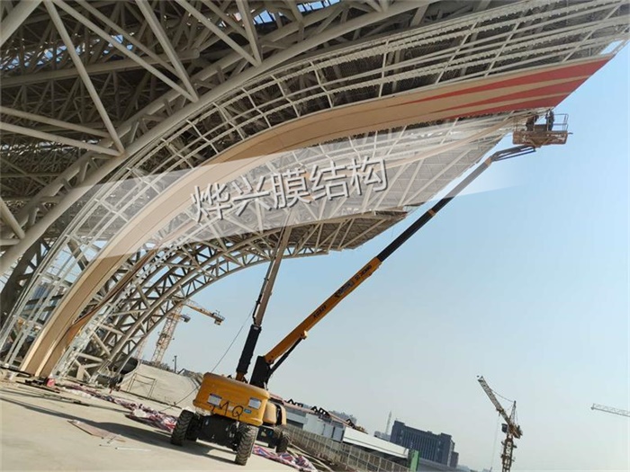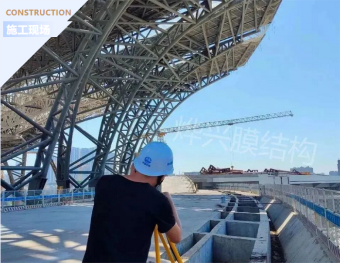 燁興作為膜結構專業(yè)承包商之一,負責為白云站項目打造一萬多平米的PTFE膜結構“木棉花瓣”。寶劍磨礪鋒利,梅花香自苦寒來,我們必會用我們的辛勤汗水和豐富的技術經(jīng)驗讓白云站的“木棉花”完美綻放。如今燁興團隊已經(jīng)進場施工,現(xiàn)場正有條不紊地進行膜結構安裝先期準備工作。